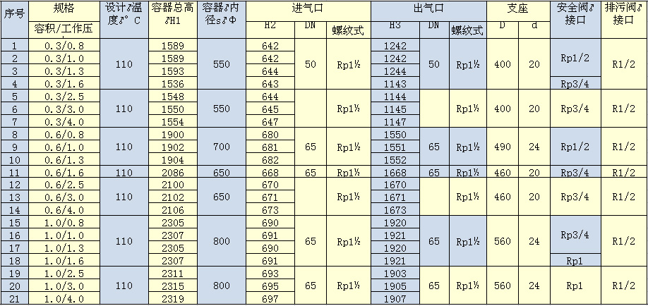 是专门用于储存压缩空气的压力容器,主要用于存气缓冲,同时起稳定系统压力的作用,避免空压机频繁加卸载和除掉大部分的液态水,主要与压缩机、冷冻式干燥机、过滤器等设备配套使用,组成工业生产上的动力源压缩空气站。